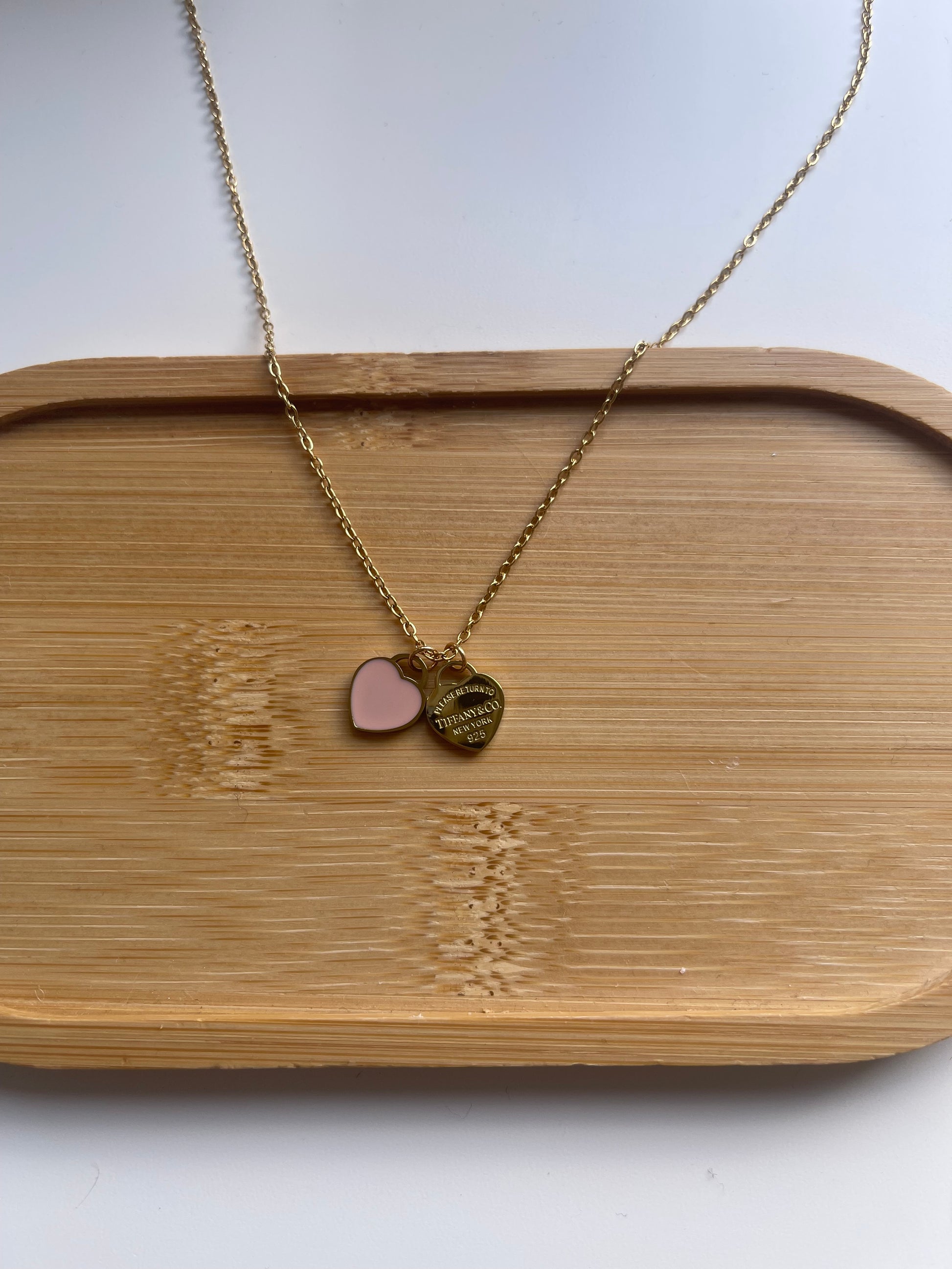 Pink and gold double heart necklace